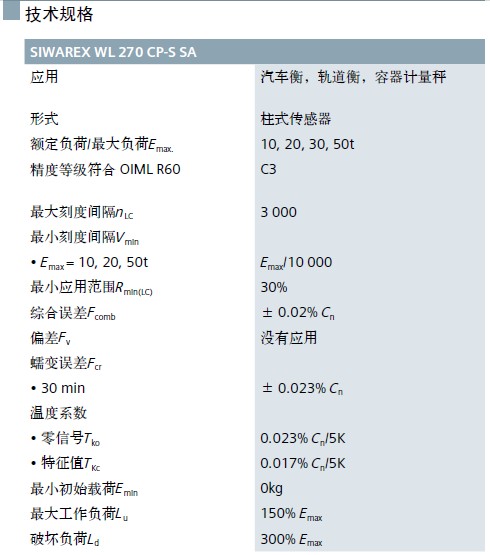 SIWAREX WL270 CP-S SC稱重傳感器參數(shù):hWp廣州南創(chuàng)電子科技有限公司
