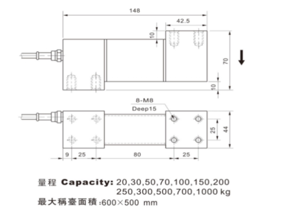 PE-8-700KG稱重傳感器Minebea尺寸圖:G1R廣州南創(chuàng)電子科技有限公司