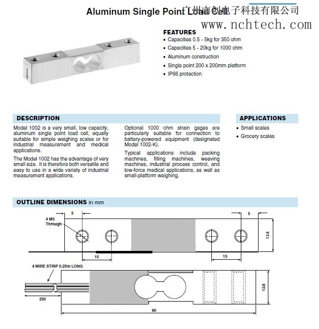 特性:量程0.5-5KG(350 ohm)vey廣州南創(chuàng)電子科技有限公司