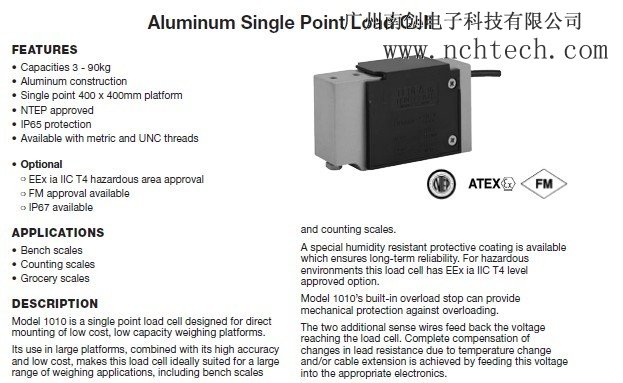 模型1010是單點(diǎn)負(fù)荷細(xì)胞designed for直接安裝低成本的低容量、平臺秤。Omn廣州南創(chuàng)電子科技有限公司