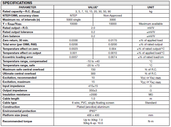 美國tedea稱重傳感器 1015系列稱重傳感器所有量程如下:CGW廣州南創(chuàng)電子科技有限公司