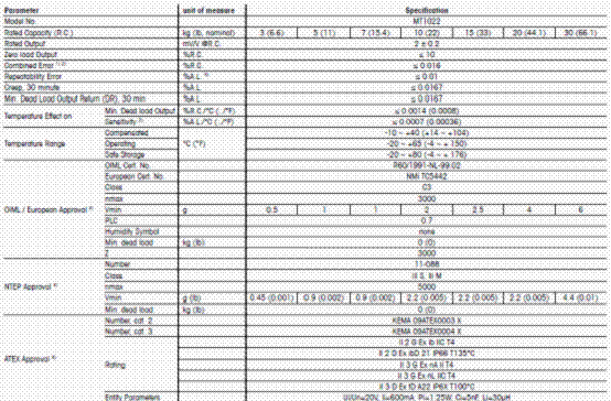 梅特勒托利多Mettler Toledo MT1022稱重傳感器技術(shù)指標(biāo):JG9廣州南創(chuàng)電子科技有限公司