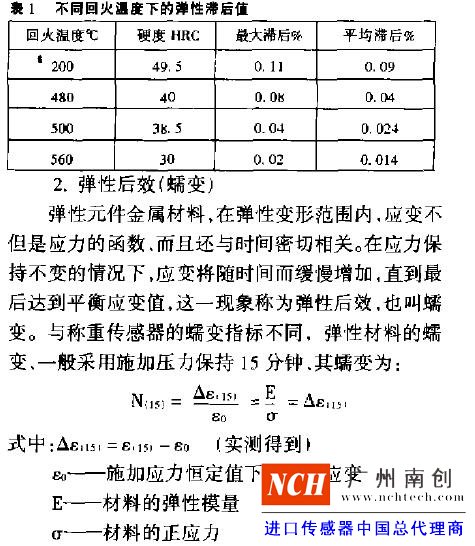 感器工作性能穩(wěn)定,還要求金屬材料抗微塑變形能力強(qiáng),即具有較高的彈性極限,因?yàn)閺椥詷O限愈高,滯彈性效應(yīng)出現(xiàn)的愈少。稱重傳感器彈性元件的質(zhì)量,很大程度上取決于彈性元件的制造工藝,特別是熱處理工藝。這些工藝直接影響到彈性元件的彈性和應(yīng)力,尤其是滯彈性效應(yīng)。所謂滯彈性,就是材料在彈性變形范圍內(nèi),同時(shí)伴有微塑變形,使應(yīng)力和應(yīng)變之間不遵循虎克定律,而產(chǎn)生非線性誤差,這種現(xiàn)象稱為材料的滯彈性。其表現(xiàn)形式較多,主要有:彈性滯后、彈性后效(蠕變)、應(yīng)力松弛等。