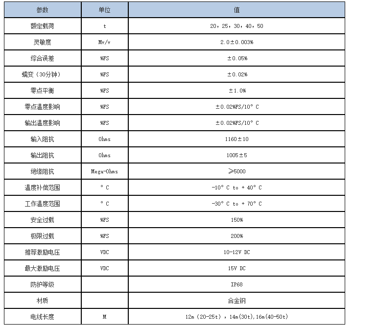 數(shù)字型柱式稱重傳感器技術(shù)參數(shù):Upu廣州南創(chuàng)電子科技有限公司