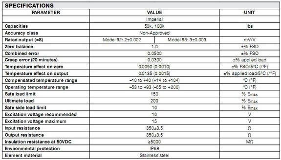 產(chǎn)品名稱:Vishay Revere稱重傳感器93-100KLBS