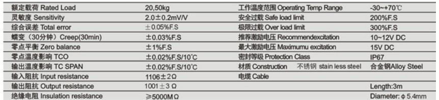 US-50KG稱重傳感器技術(shù)參數(shù):CnK廣州南創(chuàng)電子科技有限公司