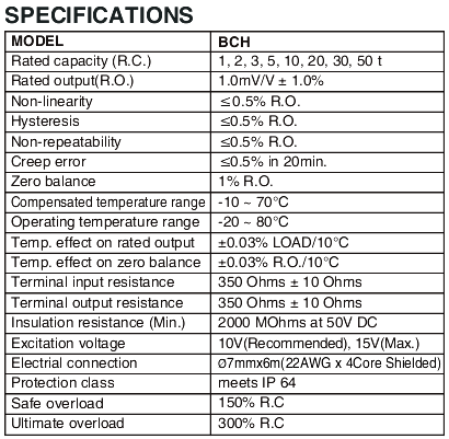 韓國奉信BCH稱重傳感器量程如下:daY廣州南創(chuàng)電子科技有限公司