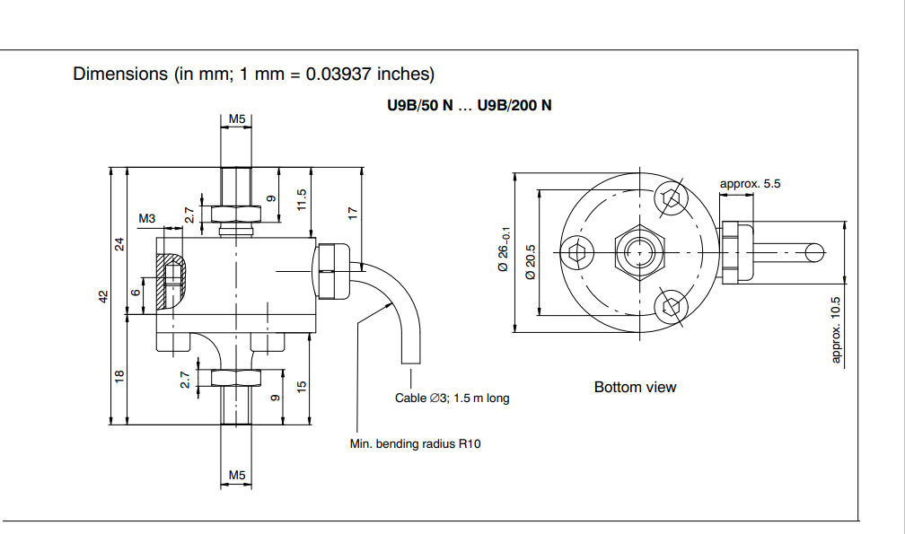HBM U9B力傳感器尺寸圖:1oa廣州南創(chuàng)電子科技有限公司