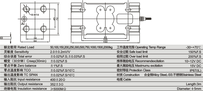 IL-2t稱重傳感器詳細(xì)參數(shù):