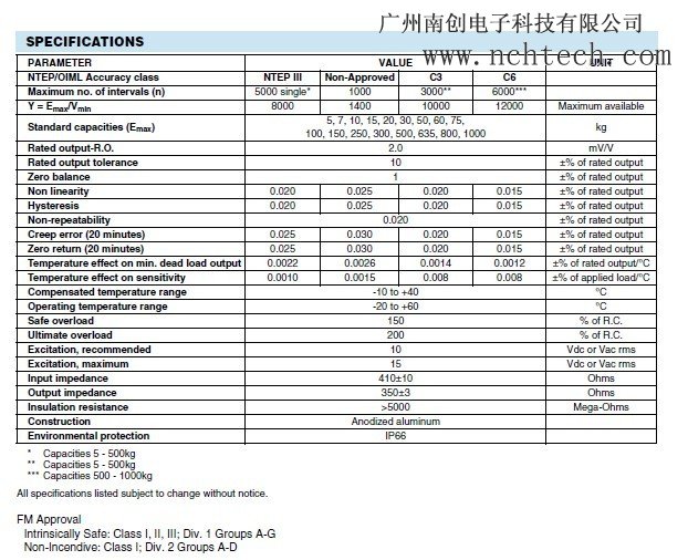 Class III 5000S, lllL10000 認(rèn)證 250lb-20Klb可選功能:調(diào)頻批準(zhǔn)可以使用W2a廣州南創(chuàng)電子科技有限公司