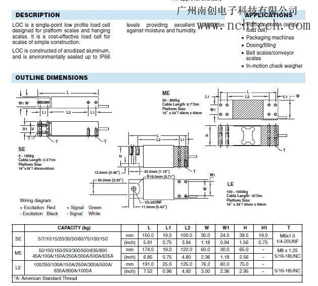 應(yīng)用:平臺秤(單支傳感器) 包裝秤 定量給料 皮帶秤 分選秤W2a廣州南創(chuàng)電子科技有限公司
