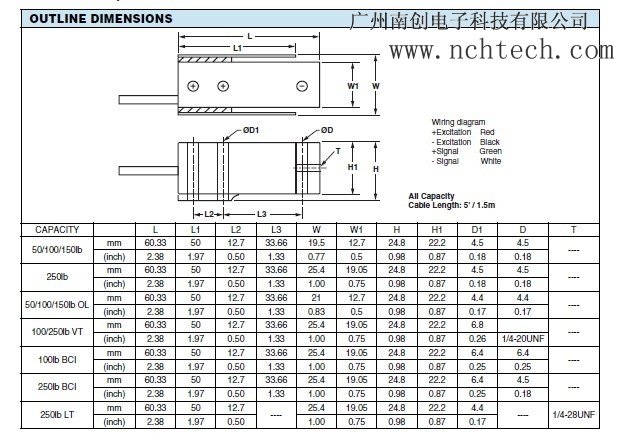 額定載荷Standard capacities (Emax) 50,100,150,250 lbsP7t廣州南創(chuàng)電子科技有限公司
