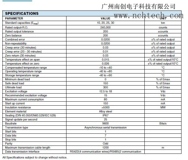 鋁合金制成,有良好的防水防濕功能,保護(hù)等級為IP66。量程 750-2000kg綜合精tac廣州南創(chuàng)電子科技有限公司
