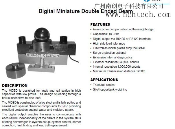 美國(guó)世銓Celtron MDB雙剪切梁式稱重傳感器專為卡車和鐵路的低配置高容量規(guī)模設(shè)計(jì)。在裝載過(guò)程中不易受負(fù)載影響。HAE廣州南創(chuàng)電子科技有限公司