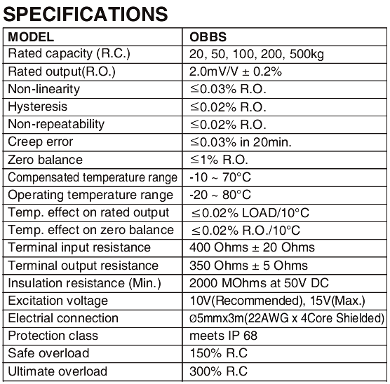 bongshin OBBS-20kg稱重傳感器量程:EIV廣州南創(chuàng)電子科技有限公司