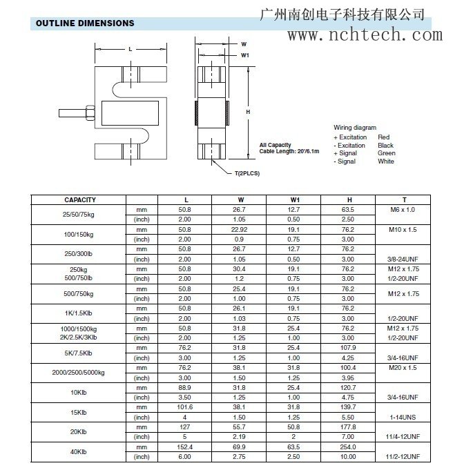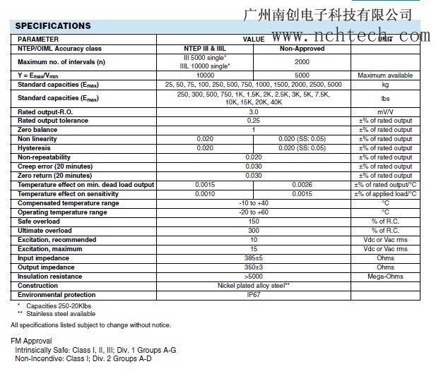 額定載荷Standard capacities (Emax) :5, 7, 10, 15, 20, 30, 50, 60, 75,100, 150, 250, 300, 500, 635, 800, 1000  kgTzX廣州南創(chuàng)電子科技有限公司