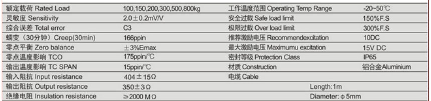 UDA-300KG傳感器技術(shù)指標:3gm廣州南創(chuàng)電子科技有限公司