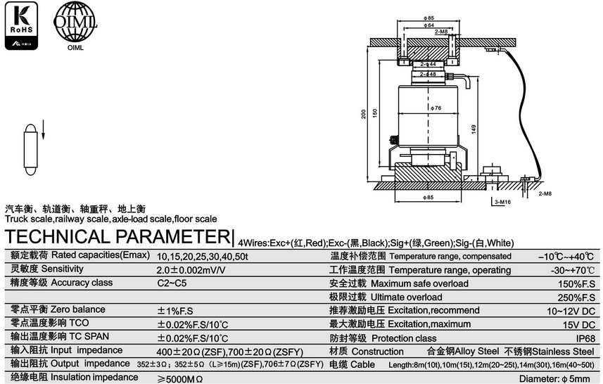 柯力ZSFY-A-50T稱重傳感器功能特點(diǎn)