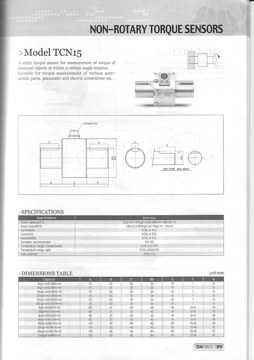 Dacell TCN15扭矩傳感器其它相關(guān)產(chǎn)品型號:
