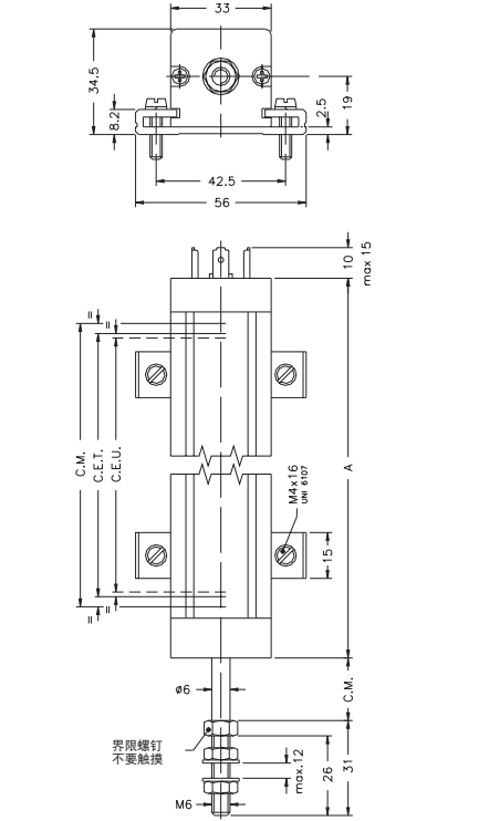 杰佛倫直線位置傳感器的尺寸圖:w0y廣州南創(chuàng)電子科技有限公司