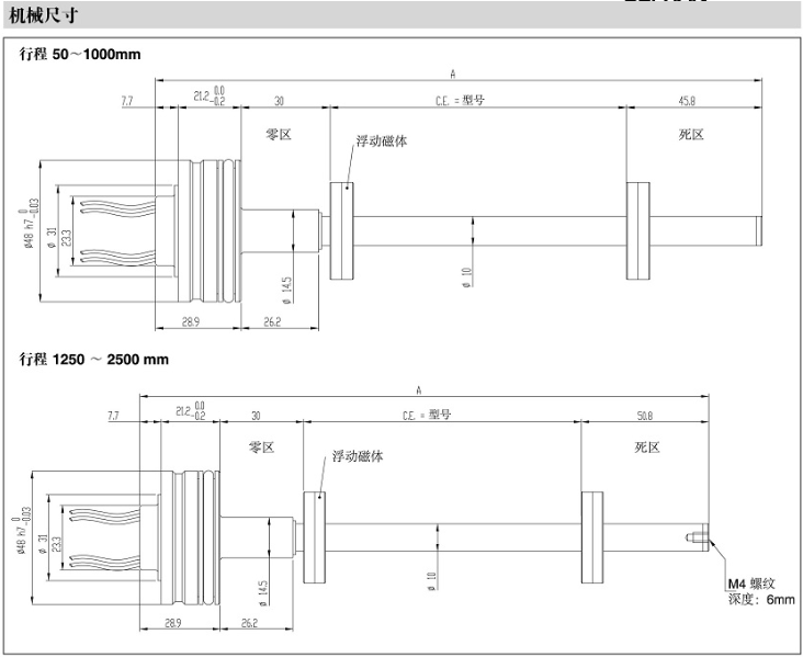 杰佛倫非接觸式磁致伸縮位移傳感器的尺寸圖:5bI廣州南創(chuàng)電子科技有限公司