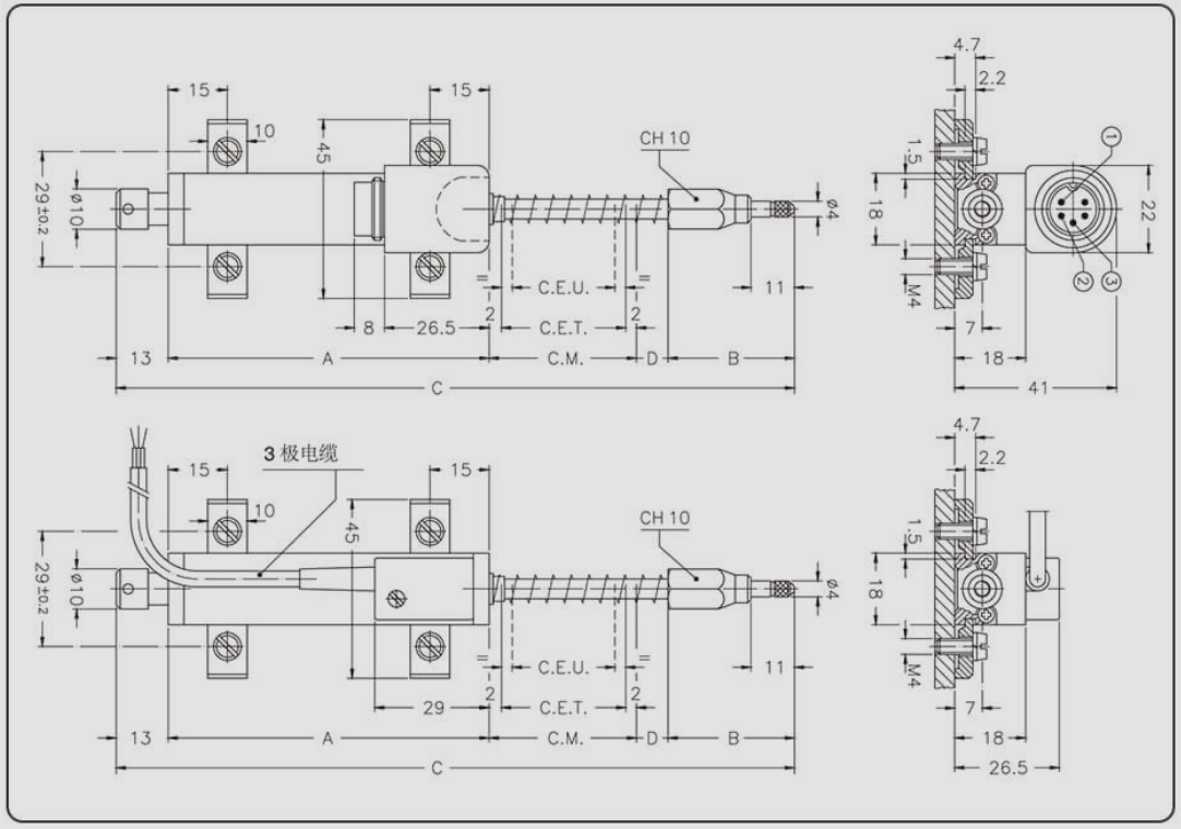 PY1、PY2、PY3自復(fù)位直線位移傳感器(別名:電子尺,電阻尺,電位器,位移傳感器)原理:電位計原理,傳感器采用側(cè)面雙向控制通桿結(jié)構(gòu),整體強度更高。測桿通過復(fù)位彈簧自動復(fù)位,適用于各種對比測量。輸出直流電壓信號,也可以通過內(nèi)置或者外置的變送模塊講信號轉(zhuǎn)換成標準的0-5V、0-10V或者4-20mA直流信號,也可以遠距離傳輸控制要求。z10廣州南創(chuàng)電子科技有限公司
