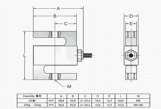 美國Transcell BSA-50kg稱重傳感器技術(shù)參數(shù)圖: