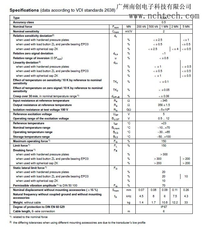 德國HBM c6a力傳感器技術(shù)參數(shù):ZSQ廣州南創(chuàng)電子科技有限公司
