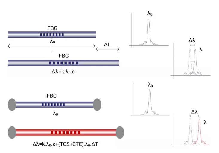 • 使用另外僅測量溫度引起應(yīng)變的光纖應(yīng)變片,用于相同的材料且相同的溫度條件下,對溫度引起的應(yīng)變進行補償