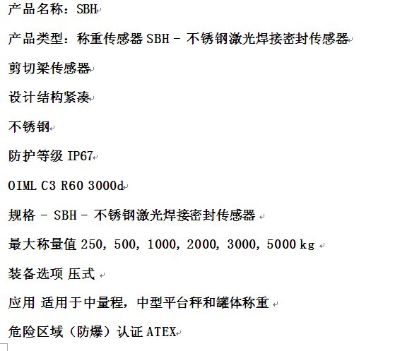托利多SBH-0.5t稱重傳感器,SBH-0.5t,SBH-0.5t傳感器型號: