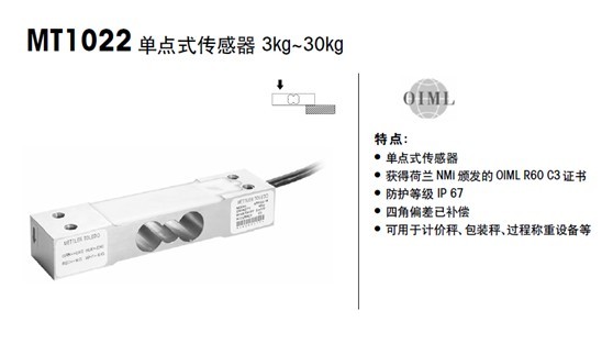 托利多MT1022-3kg稱重傳感器,MT1022-3kg,MT1022-3kg傳感器特點: