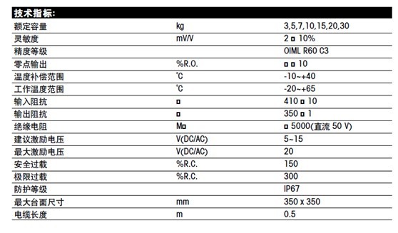 托利多MT1022-3kg稱重傳感器,MT1022-3kg,MT1022-3kg傳感器各項技術(shù)指標: