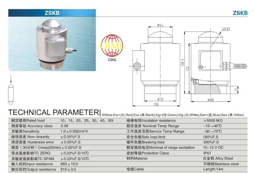 寧波柯力稱重傳感器ZSKB-ASS-(10t/15t/20t/25t/30t/40t/50t)