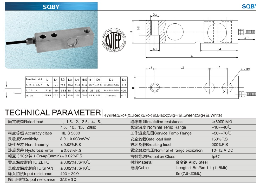 寧波柯力稱重傳感器SQBY-1klb產(chǎn)品技術(shù)參數(shù)及尺寸圖:HUu廣州南創(chuàng)電子科技有限公司