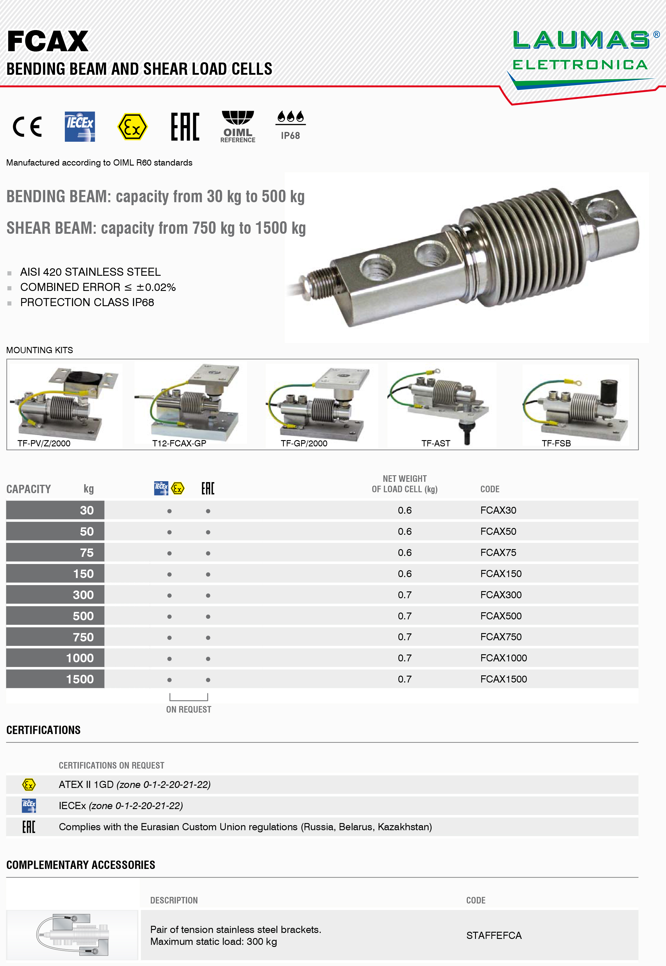 FCAX-30Kg FCAX-15000Kg波紋管稱(chēng)重傳感器_意大利Laumas