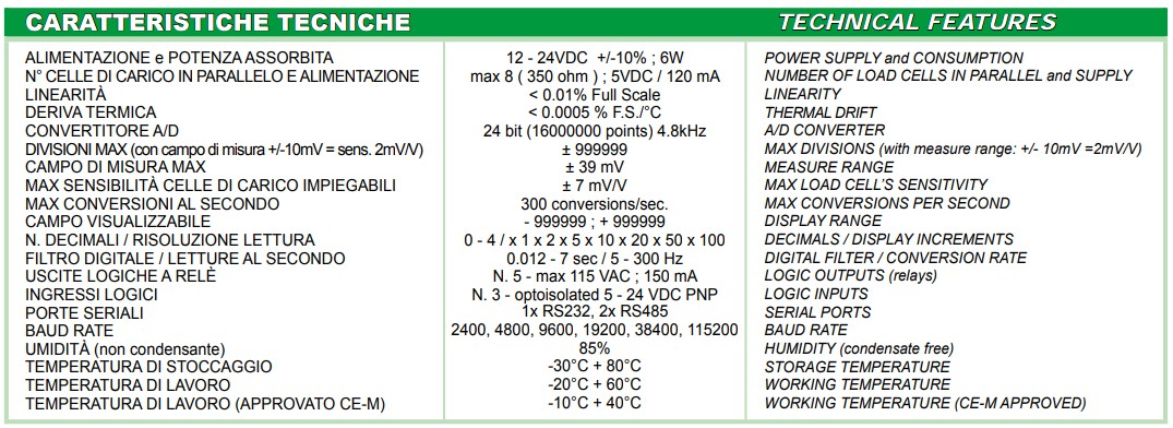 • AISI 304 stainless steel Weight Indicator, dimensions 206 x 286 x 108 mm. IP40 protection rating (D-SUB connectors). 19-key membrane keyboard. 46 indicator symbols. Real time clock/calendar.