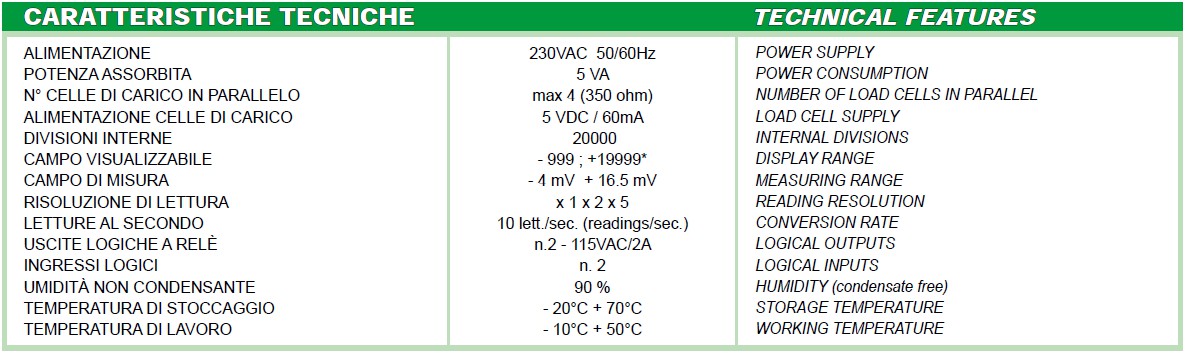oltre le 10.000 divisioni il peso visualizzato ripartirà da zero e lampeggerà ad indicare che si è superato il suddetto valore
