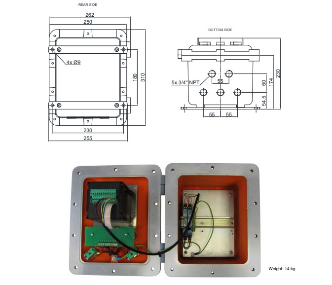 防爆箱,已通過ATEX II 2(1)GD認(rèn)證,配有耐熱透明鋼化玻璃窗和5個外部按鈕,其功能與W200鍵盤相同a2q廣州南創(chuàng)電子科技有限公司