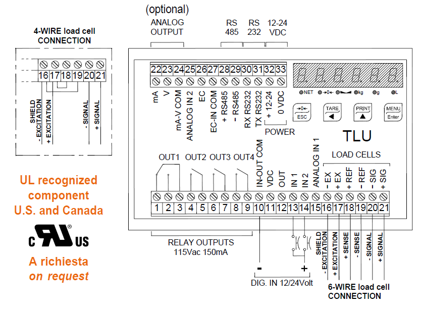 - 用于連接遠程顯示器,PC / PLC RS485和RS232串行輸出