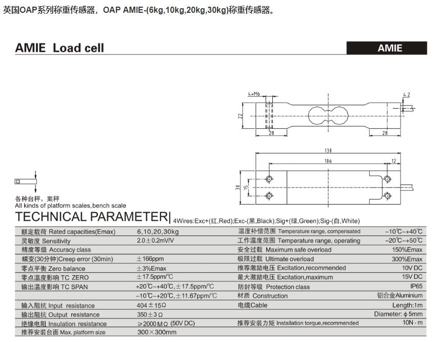 量程:AMIE-6kg、AMIE-10kg、AMIE-20kg、AMIE-30kg    p87廣州南創(chuàng)電子科技有限公司