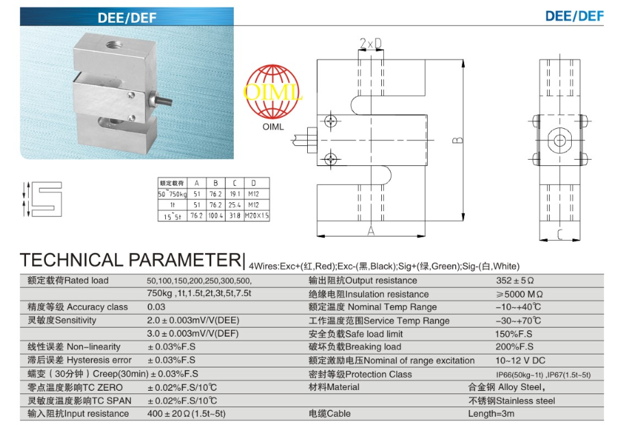mCm廣州南創(chuàng)電子科技有限公司量程可選:DEE型稱重傳感器DEE-50kg/100kg/150kg/200kg/250kg/300kg/500kg/750kg/1t/1.2t/1.5t/2t/3t/5t