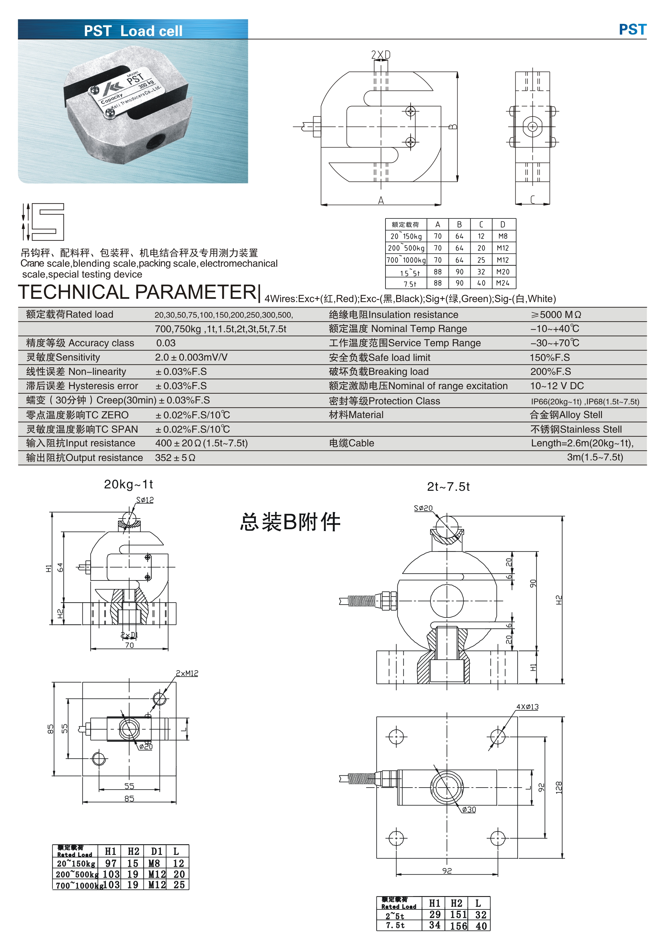 寧波柯力稱重傳感器PST-5t產(chǎn)品技術(shù)參數(shù)及尺寸圖:h83廣州南創(chuàng)電子科技有限公司