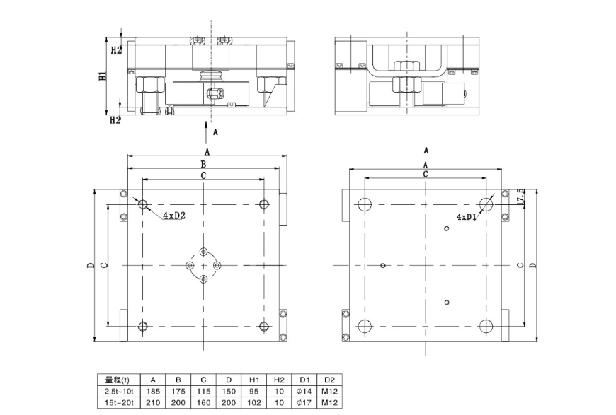 CBF稱重傳感器,適用于地上衡、配料秤、低平面臺秤。型號:CBF-2t。6hD廣州南創(chuàng)電子科技有限公司