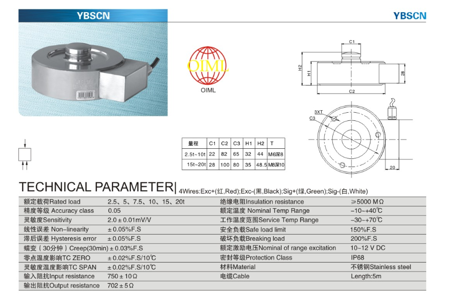 寧波柯力稱重傳感器YBSCN-2.5t/5t/10t/15t/20t