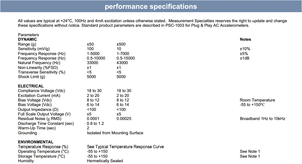 美國MEAS 7100A系列加速度計性能規(guī)格圖:GvJ廣州南創(chuàng)電子科技有限公司