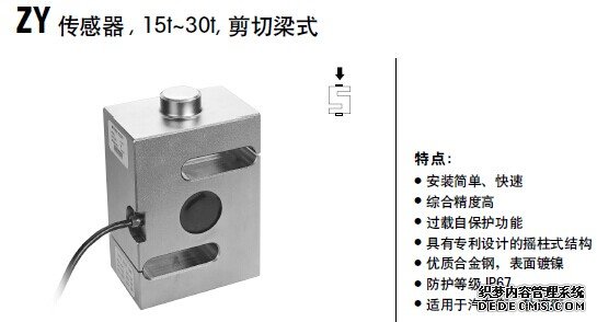 剪切梁式ZY-30t稱重傳感器具有極的綜合精度,合理的設(shè)計方案,使用安全性極高,此款產(chǎn)品大多應(yīng)用于軌道衡,汽車衡及各大配料系統(tǒng),外型不但美觀,而且安裝起來也是十分的方便,防護等級IP168,使用長期穩(wěn)定性好,焊接密封、材質(zhì)使用高度不銹鋼制作,可在高溫下工作,是一款不錯的產(chǎn)品!NGU廣州南創(chuàng)電子科技有限公司