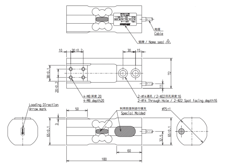 U2D1-20K稱重傳感器Minebea尺寸圖:lxU廣州南創(chuàng)電子科技有限公司
