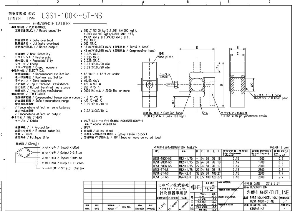 U3S1-200K-NS稱重傳感器Minebea尺寸圖:qag廣州南創(chuàng)電子科技有限公司
