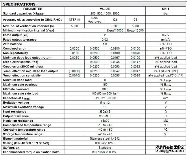 33554:  65083S-4k-5100 4000lb 20ft SENTRS 2mV/V 350 OHM NTEP Class III 5m  HS WS IP67EqW廣州南創(chuàng)電子科技有限公司