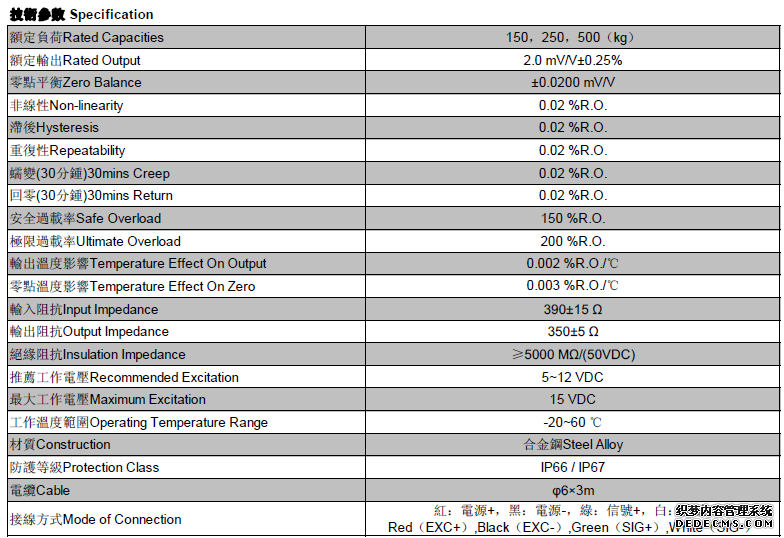 額定輸出; 2.0 mV/V±0.25%Eaq廣州南創(chuàng)電子科技有限公司